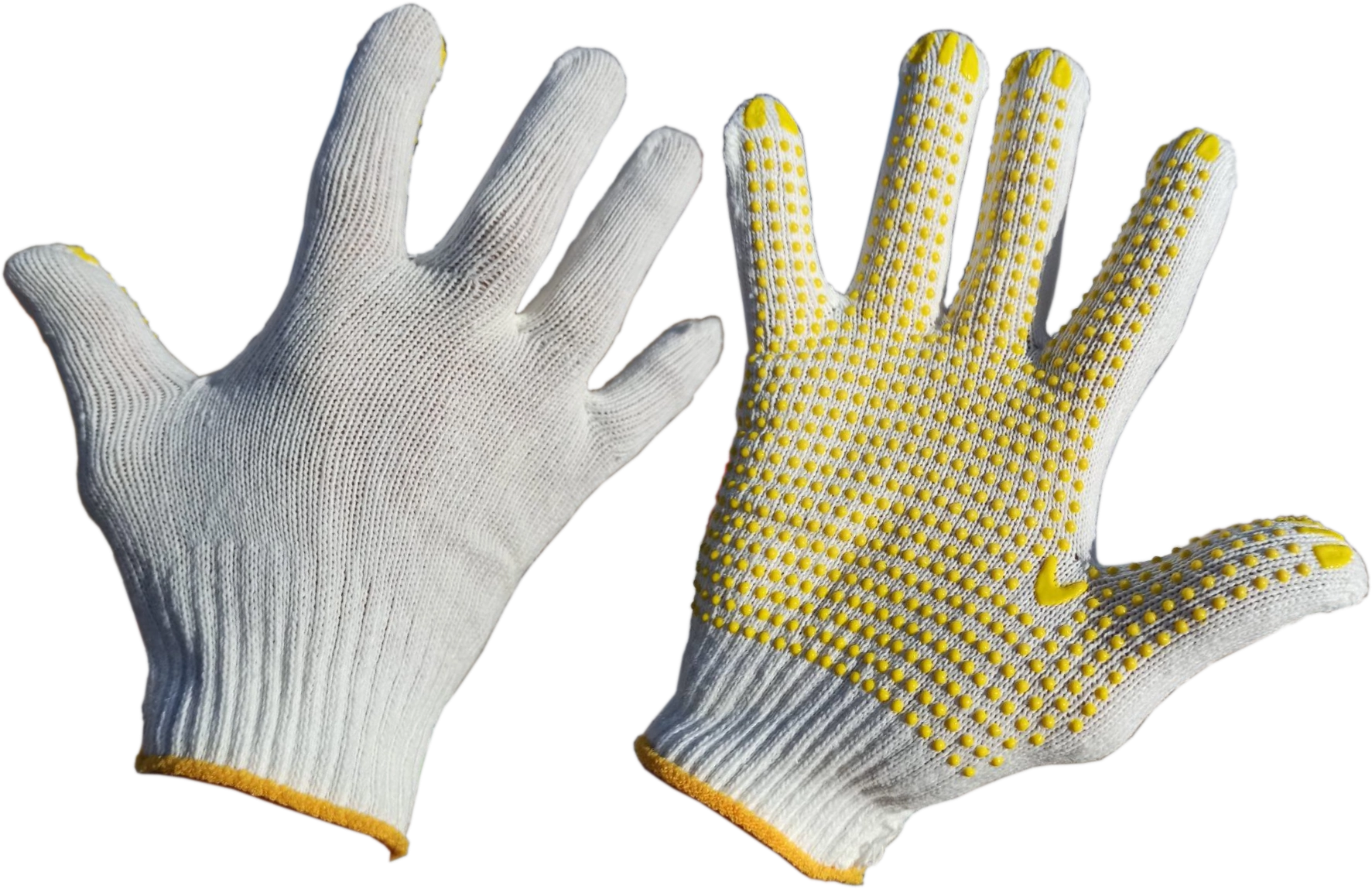 -----Перчатки трикотажные с анти-скользящим покрытием из ПВХ Белый/Желтый