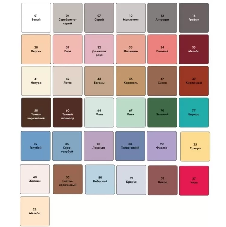 Затирка приобретает заявленный цвет по истечении 24-48 часов в зависимости от условий окружающей среды после затирания швов, выполненного в соответствии с рекомендациями по применению. Оттенок цвета готовой затирки в шве может отличаться от цвета сухой смеси; обозначенного цвета на упаковке; рекламных образцов.