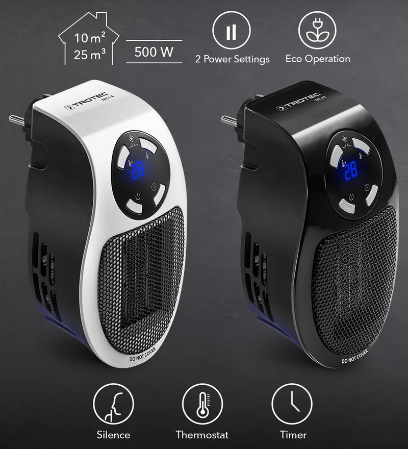 ----Обогреватель керамический с вентилятором, портативный 500 Вт, TROTEC TFC2E, Черный