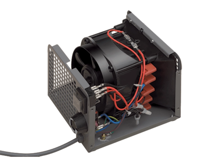В качестве нагревательного элемента в тепловой пушке используется керамический нагревательный элемент (PTC), главной особенностью которого является экономия электроэнергии, получаемая за счет меньшего потребления мощности при большем нагреве. В приборе предусмотрен терморегулятор, а так же возможность работы без нагрева.
