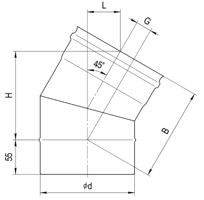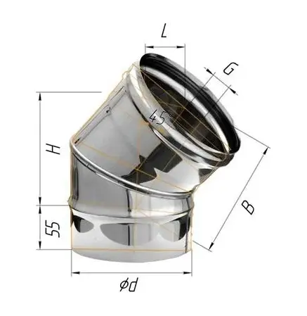 Колено угол на 135° для дымохода (2 секции) Ferrum D130 (0,5мм)
