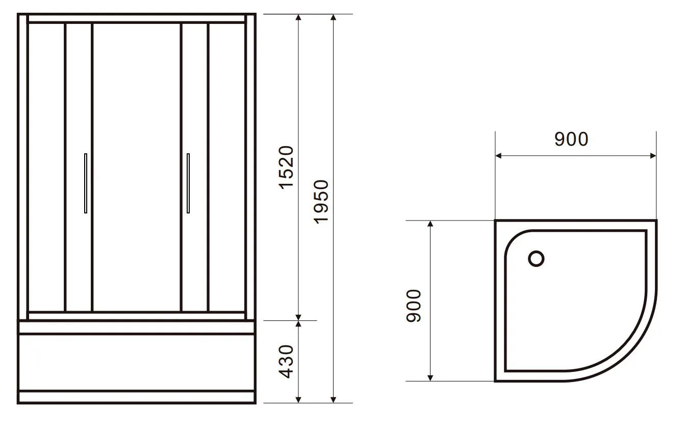 Душевая кабина BE1015 Chrom Mat 90x90cm H195 Китай
