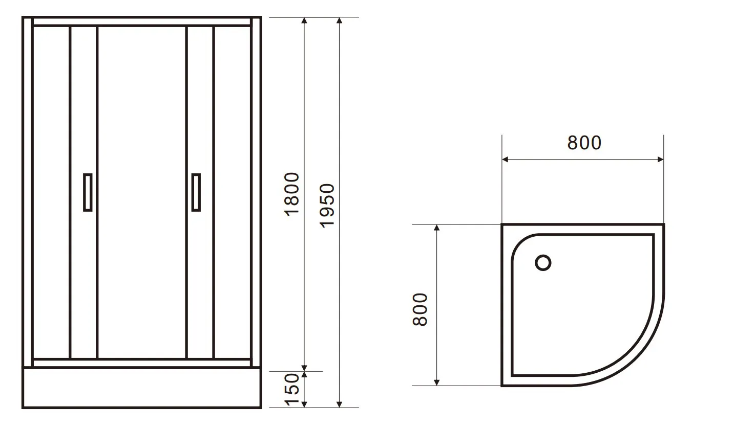 - Размеры кабины с поддоном – 80см*80см*195см