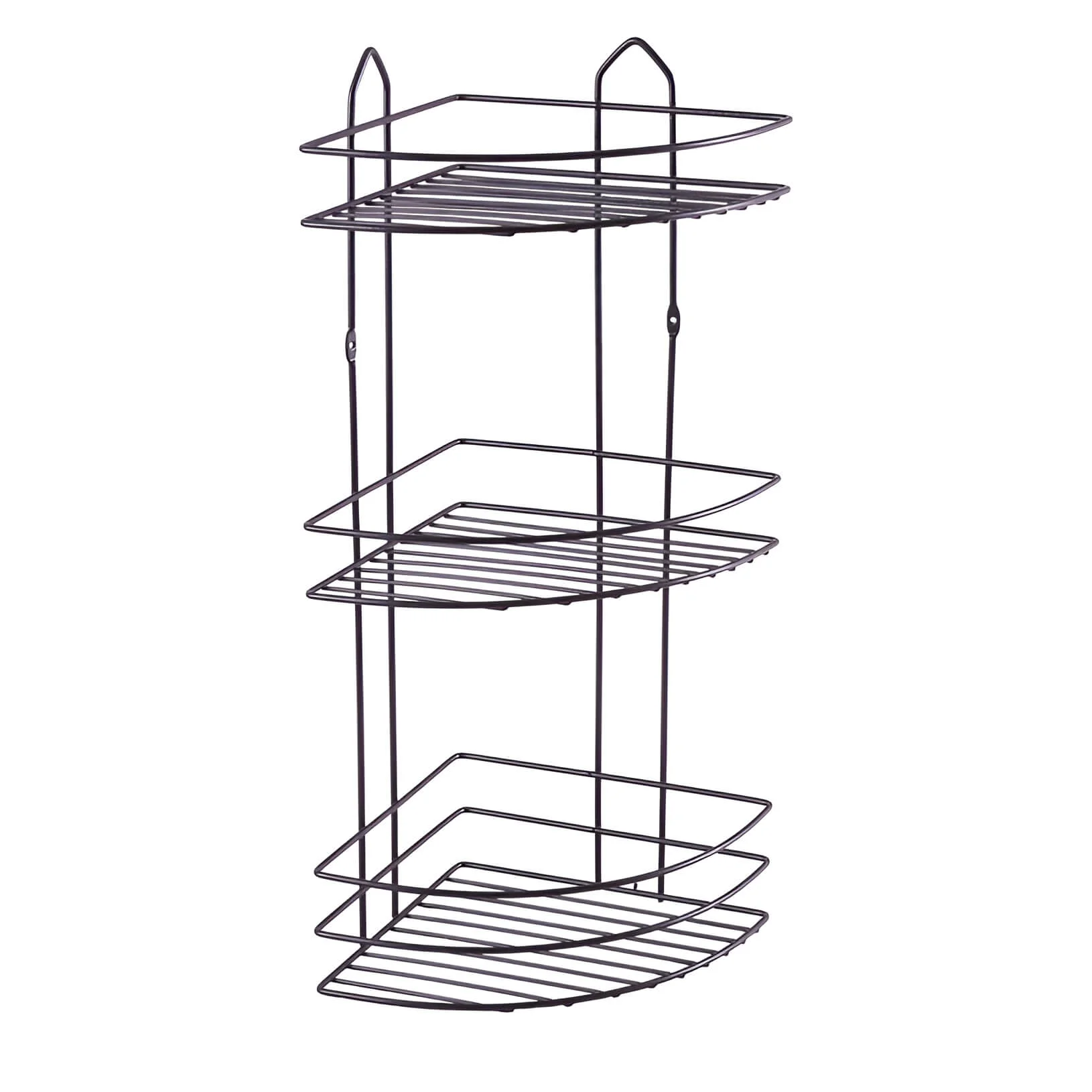 Полка угловая для ванной Perilla 3 яруса, 220х280х520 мм, металлическая, черная - предназначена для хранения в ванной комнате без лишней занятости пространства.