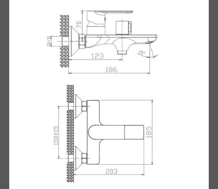 - Монтаж: настенный, со стандартным соединением 1/2″, подходит для большинства вариантов установки