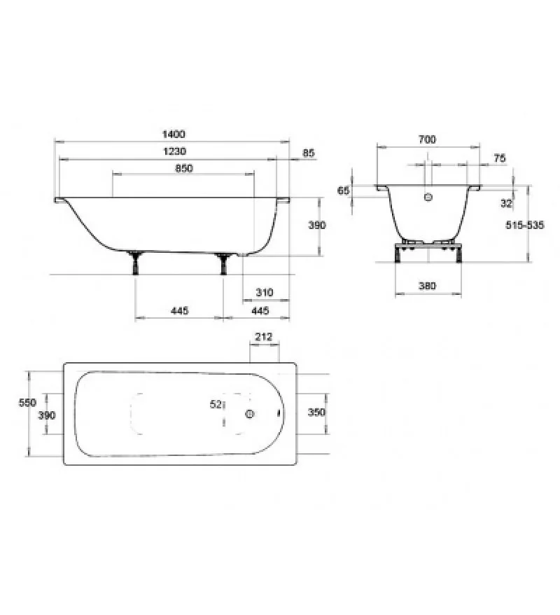 Ванна стальная EUROWA 1400*700 мм, белая, Kaldewei