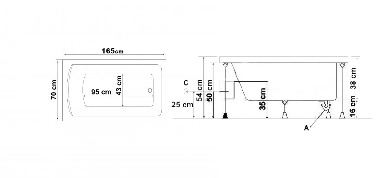 Прямоугольная ванна Milas 70x165cm SG Stelle Banyo Турция