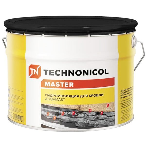 Мастика битумно-резиновая кровельная и гидроизоляционная битумнорезиновая холодная AquaMast представляет собой готовый к применению многокомпонентный материал, состоящий из нефтяного битума, модифицированного дробленой резиной, технологических добавок, минеральных наполнителей и органического растворителя.