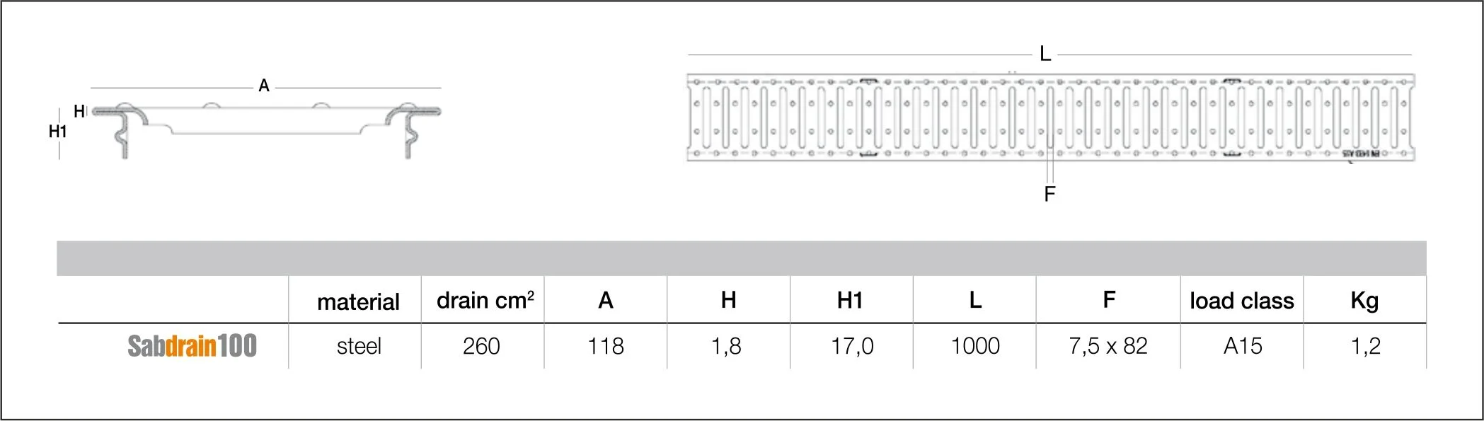 Решетка канализационная БЕЗ лотка, оцинкованная сталь 100х1000 мм, SAB