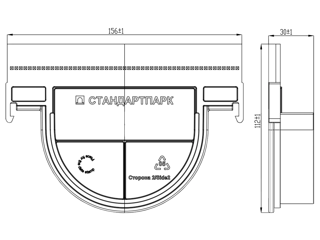 Заглушка торцевая пластиковая, для модернизированных водоотводных лотков POLYMAX BASIC внутреннего сечения 100мм (DN100), высотой 120/135мм.