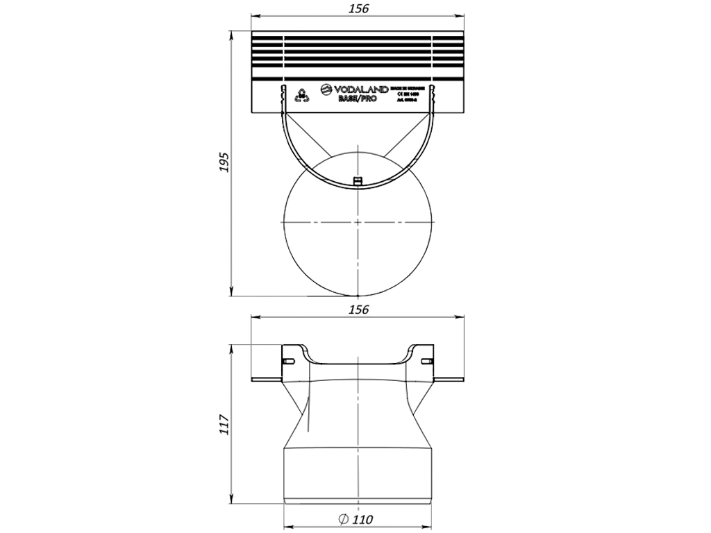 Заглушка пластиковая с выпуском 110 мм для лотка пластикового Base DN100 H120/H135
