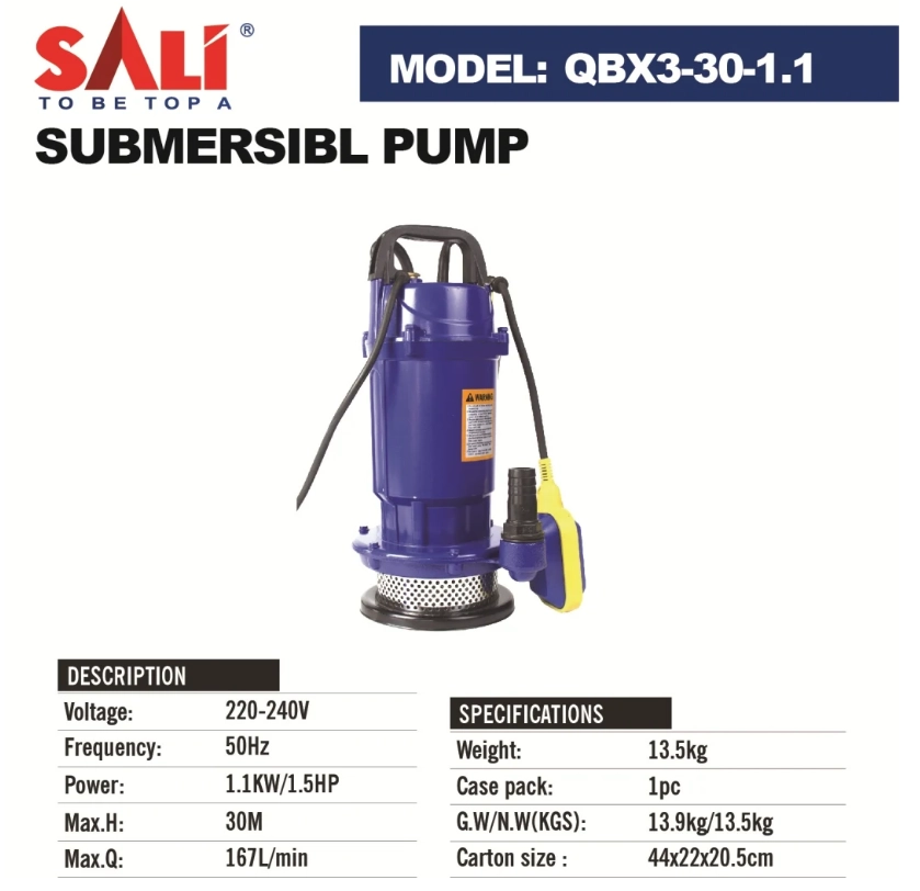 Насос центробежный дренажный QDX3-30-1.1, 30м, 167л/мин, 1,1кВт, SALI